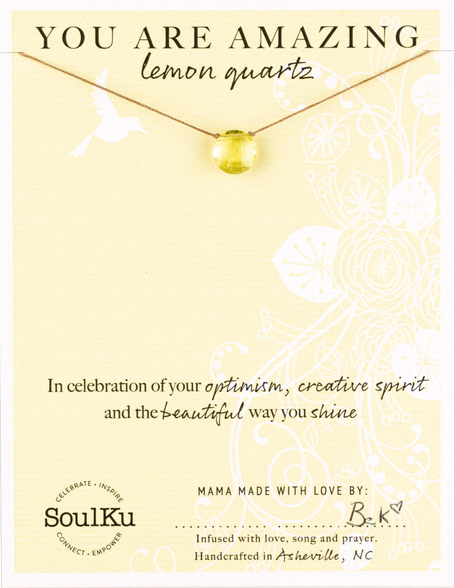 Lemon Quartz Beam Necklace for You Are Amazing