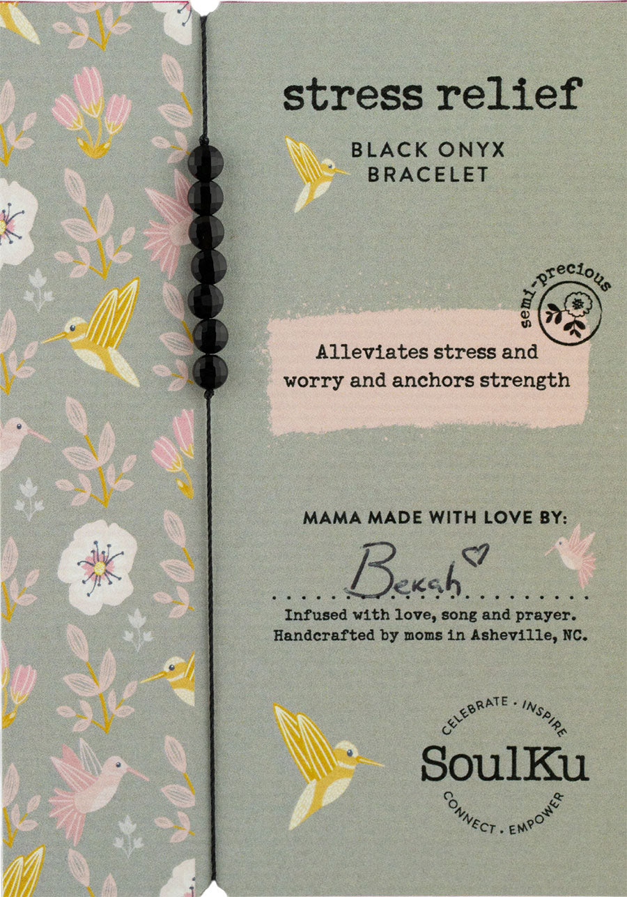 Black Onyx Hummingbird Adjustable Bracelet for Stress Relief