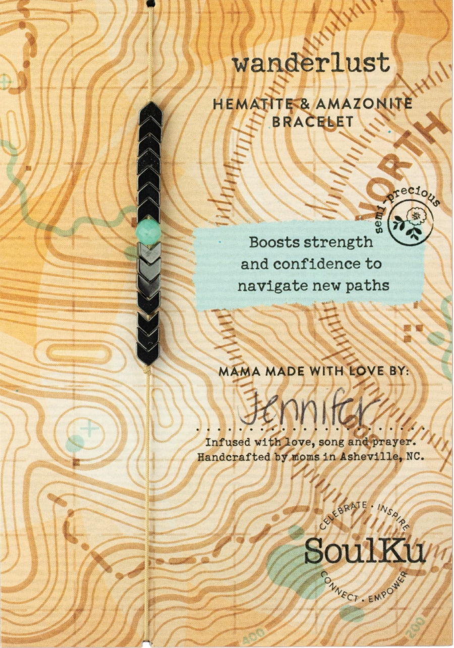Let curiosity lead. With Amazonite for confidence and hope, and Hematite for grounding strength, the Wanderlust bracelet encourages you to explore uncharted paths with trust in yourself.