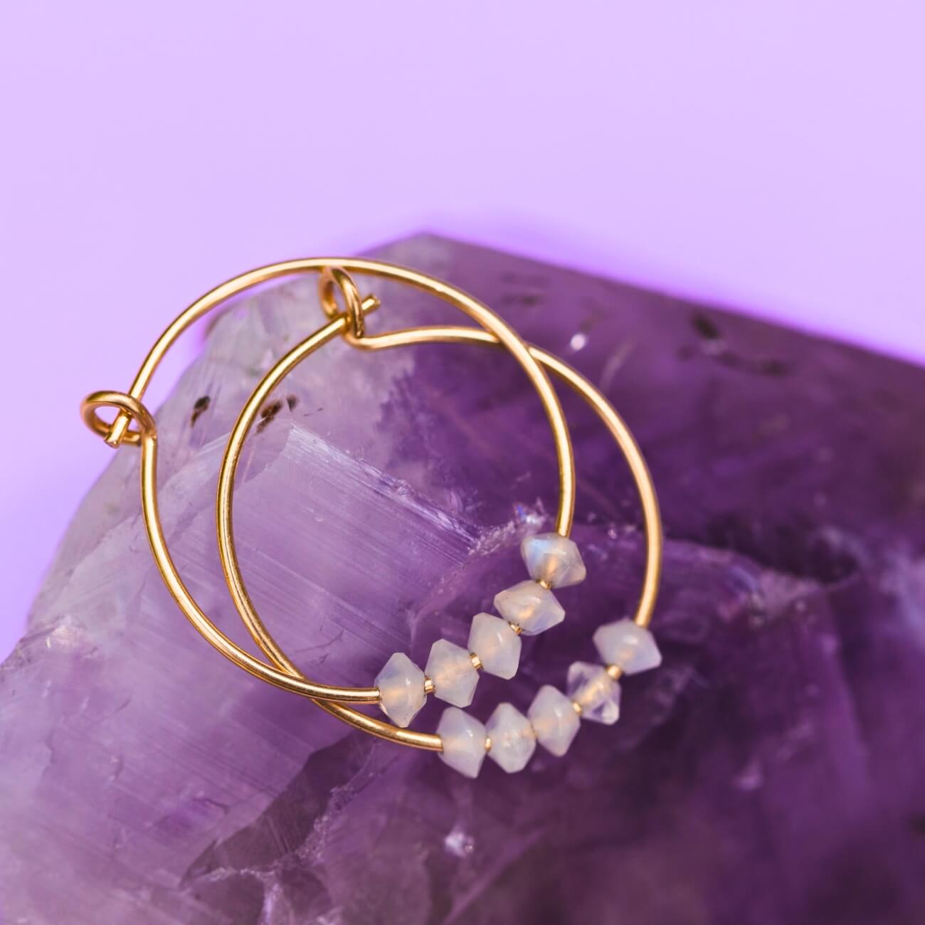 Herkimer Diamond Gold Hoop Earrings for Tranquility