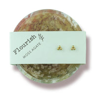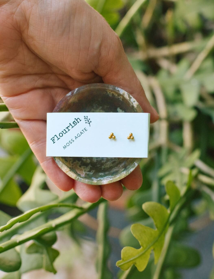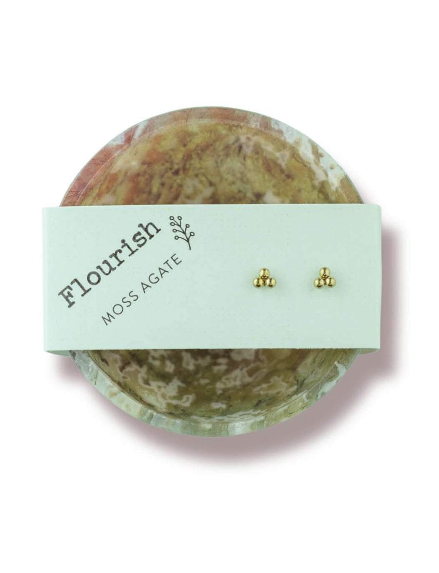 Moss Agate Bowl & Gold Trio Studs Flourish Set