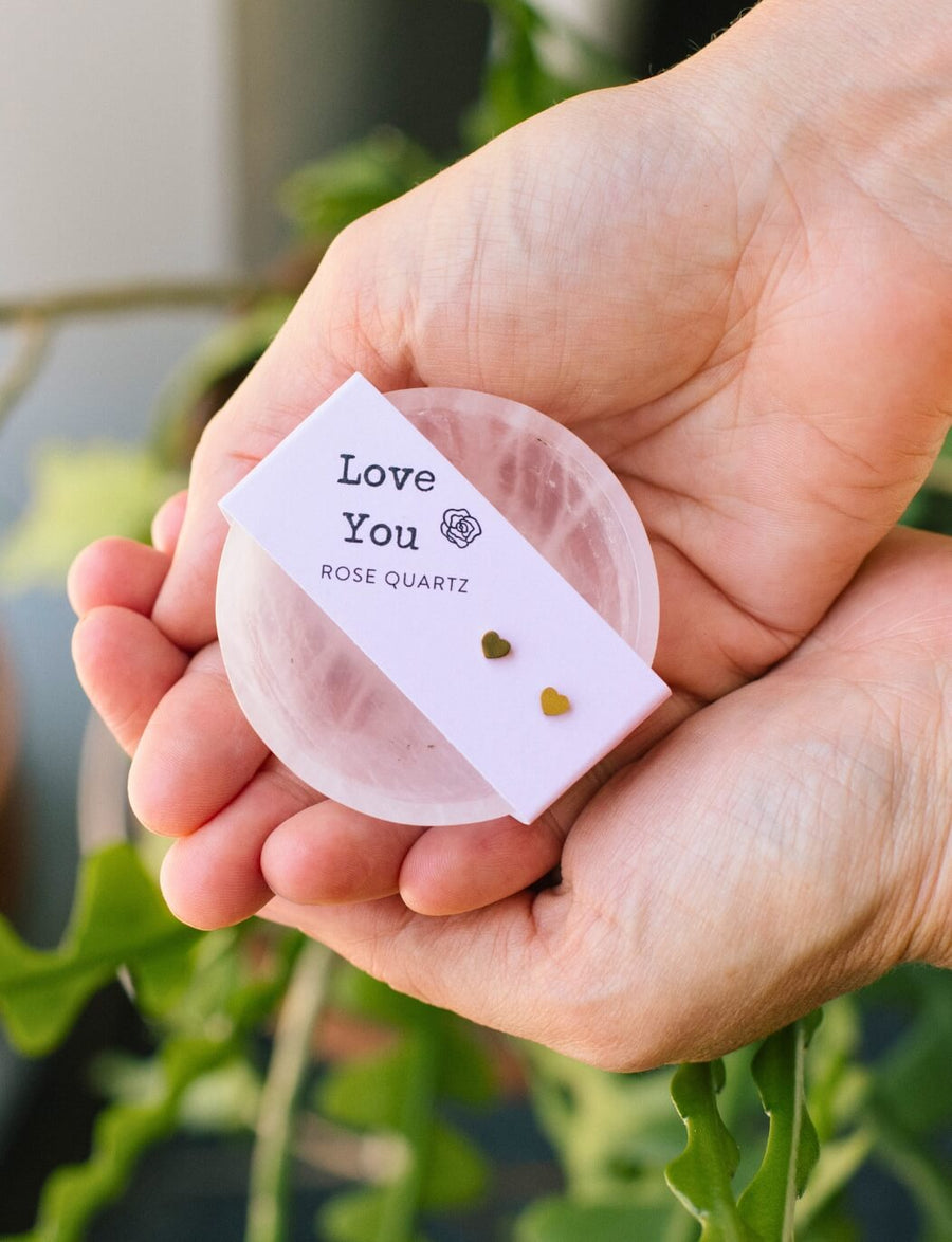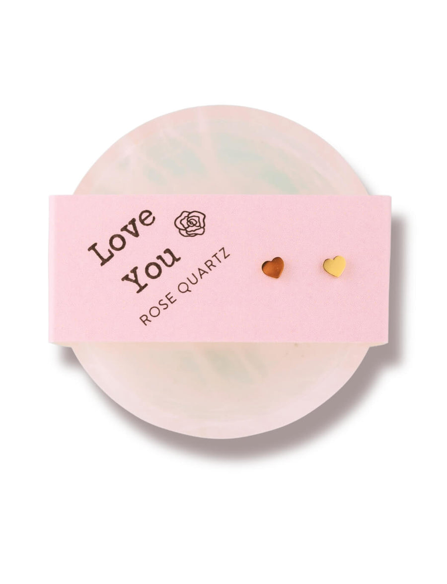 Rose Quartz Bowl & Gold Heart Studs Love You Set